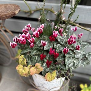 11月に迎えたシクラメン 今年は晩秋暖かかったので、農高のシクラメンの販売日を逃してしまいました。 なのでどんなシクラメンが良いか、HC行く度に物色してました。 今迄育ててない花が欲しくなる🌸 ブルー系の💙花も色々出てきて素敵! でも弱そうに見えて、連れてきたかったのも置いたりして、別の店でこれを見つけた😥