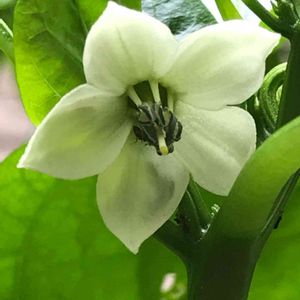 パプリカの花第一号。 大きく育てるために摘みましょう。 かわいい姿、見せてくれてありがとう。