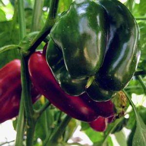 食べ頃の子たちと、まだもう少しの子たち😋 パプリカ植えたのに赤黒い丸い実が、、なんでしょう?
