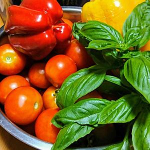嵐の前の駆け込み収穫‼️ バジルとパプリカ(赤)