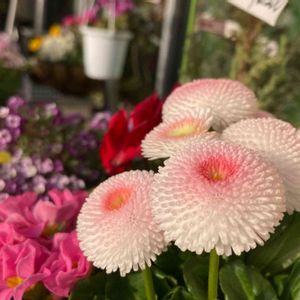 お散歩シリーズ🚶♀️🐶♪ 今日の夕方撮り✨ キャンディみたいに可愛らしい、ポンポネットデージーさん🍬🍬🍬 お散歩ついでにスーパーでお買い物、そのついでに店頭に並んでいたお花を撮りました🤗🎶