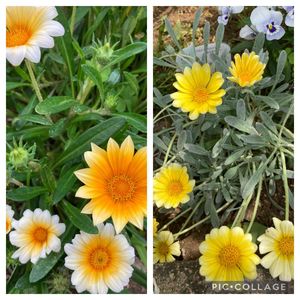 冬越ししたPW苗 ガザニアビースト カナリアスマイル シルバーのカラーリーフの シルバーフォックス 日が差していないと 閉じたまま なかなかシャッターチャンスなし💦 だけど 花色の変化が楽しめて 可愛い☺️👍