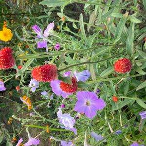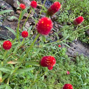 ~黄花千日紅(ストロベリーフィールド)~です🌼 赤いベリーのような💠が、 沢山咲いています💗 可愛らしい💕