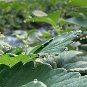 イチゴの葉水😆 朝日に照らされて輝いてます😍 今日から甥っ子が、アルバイトにきまーす☺️