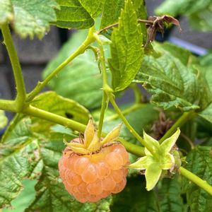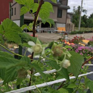 ラズベリー(インディアンサマー)さんの実です!!! (※イエローラズベリーでした..) 着々と大きくなってきています(^ν^) 二期なりの種類で、夏と秋の二回なるのですが夏の実は梅雨や台風の被害にあいやすいようでなかなか難しかったりするらしいですね💦 秋の果実は比べて育てやすいらしいです^ ^ 今実がなってる枝(前年枝)は枯れて、今地下から芽を出して大きくなっている枝(当年枝)が秋と、来年の夏の実をつけます^ ^ たくさん実をつける時に大事なのは当年枝をどれだけ大きくできるかですね...