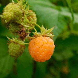 イエローラズベリー 今年3月に定植 まだ1年目なのに、1日5粒くらい実をつけます。