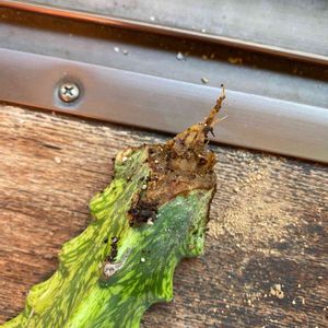 植え替え中に緊急事態発生😱😱😱💦 前に株分けしたイエローゴーストの親株?なのですが、下のところが腐ってる?のですが、この場合このまま乾くまで干した方が良いのか、それとも腐ったところをカットして何かした方が良いのか…よく分かりません😭💦 ちなみに親株は触ってみたところ、ブヨブヨはしてなくてまだカチッと固いです🥺 アドバイスお願いします😭🥺💦