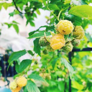 ラズベリー、インディアンサマーさんが色づき始めました😆 (※イエローラズベリー、品種不明でした...。苗屋に騙されました) いよいよ!! 収穫の時が近く!!!! いかんせん、数日は雨が続くんですよね(´・ω・`) 完全に色づくには数日かかりそうですがお腹を鳴らして待っておきます...