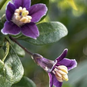 今日のお花 クコ 以前投稿した線路沿いの空き地に 実を探しに行きましたが 一個も見つからず、まだ可愛いお花を咲かせていました やっと目に入る大きさですが 美しさと力強さを感じます