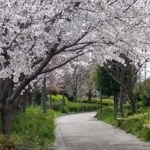 今日も桜散歩、駅から線路沿いに植えられた色々な種類の桜、写真は、ソメイヨシノで、満開でした。 江戸彼岸桜と、枝下桜は、五分咲きでした。