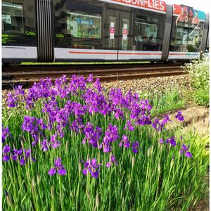 今日のお花 アヤメ いつもの散歩道🚶♀️ 電車の走る線路沿いのこの場所に 春になると毎年咲いています💜💜💜 4月のpicです
