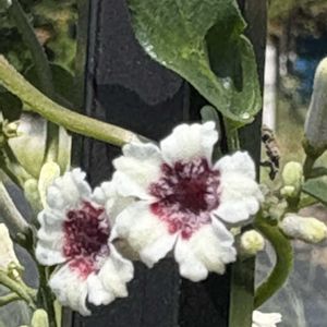 車で線路脇の道を 走行中、草藪に白い花が見えガガイモかと… パチリタイムでした💕😅