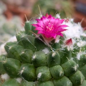 マミラリア トルカꕤ 調べました間違いなさそう🌵 容器そのまま植え替えもしていない写真で残念な感じですが😥 以前こちらで よそ様の投稿を見て欲しかったサボちゃん この度きれいなお花を咲かせてくれました☺️ ショッキングピンクで鮮やかですね😙