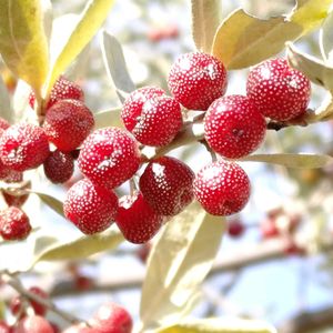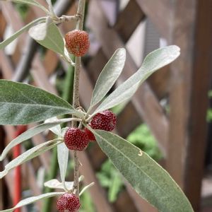 この秋3度目の鎌倉ぶらり〜🚶♀️ 覚園寺へ向かう途中の道でオリーブの木🫒??と近づいたら、なんだか可愛い小さな赤い実がいっぱい成ってる😳😳❗️ こりゃ何だぁーと早速パチリ📷️してたら、「グミですよ〜」と声をかけられた。 「オリーブグミ、良かったら農薬使ってませんから、食べてみてください」 この植物を育てていらっしゃるこの家の方でした😊 お言葉に甘えて早速パクリ。 うっ😳😯渋っ🤒えっ🤔甘っ☺️ ロシアンオリーブはグミ科の植物。 オリーブはモクセイ科の植物で、ロシアンオリーブはオリーブに似ているからそう呼ばれているだけなんですって。 鎌倉一期一会、また貴重な経験をしました。 ご馳走様でした🙇♀️🙇♀️🙇♀️ 別名:ホソバグミ、ヤナギバグミ、サジー