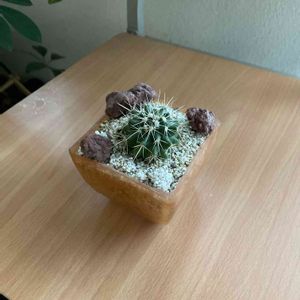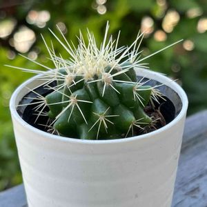 適当な育て方をしていたため10年経ってもあまり成長していない&下側が傷んでいる金鯱。 直径20センチほど。 買ったときの大きさは覚えていないけど980円くらいだったはずだから案外小さかったのかな? ここ二年は、しっかり日に当てて育てたので成長点付近のトゲは長くイキイキとしてきた。 いつか大玉の金鯱となる日を夢見て…。