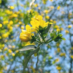 散歩🚶♀️より やっぱり黄色が眼に止まります✨😌✨ 黄梅 (雲南黄梅のようです) 毎年ここを通る時に気になる花です😂モリモリに咲いてます。