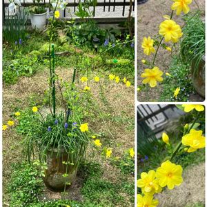 庭の南側に黄色のお花が垂れ咲いています💛 〝雲南黄梅〟フェンスの外に出ない様に 枝を入れ込んで置いたら良い感じに咲いてくれました 黄梅が降り注ぐ下には水色と白のハナニラ 来年はここにクリスマスローズエリアを拡大予定 新しくお迎えしたのを植えるスペースにします キュンキュン乙女倶楽部活動 🏷黄色い魔法 2つ目の投稿になります