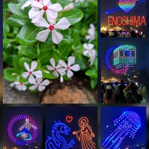 ニチニチソウ 夏花火🎆 小輪ですが次々と花を咲かせてくれる夏花火🎆 お気に入りで毎年植えてます! 先日は江の島でドローンショーがあり、夜空に500機のドローンが自由自在に動き回り 素敵なストーリーを見せてくれましたよ! 江の島龍神伝説をもとにしたストーリーと サザンや髭男の音楽に合わせて江の電、クラゲ、波乗り、と次々変化していくのが楽しくて‼️ 10分のショーの後はカウントダウン。 5.4.3.2.1ドーン🎆 花火がうち上がりました!