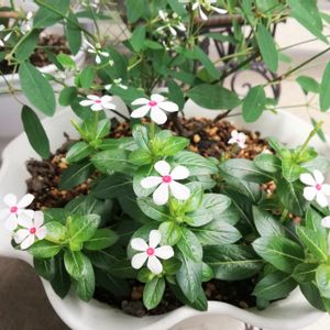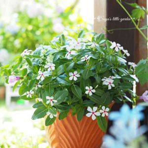 ニチニチソウ夏花火、成長してきたけど花を均一に咲かせるの難しいね💧 週1の液肥じゃ花が米粒くらいの小ささでまばらになっちゃう、 水やりのたび液肥を挙げているけど土があまり乾かないからもっとあげたくてもあげられないし もっと満開って感じにしたいなぁ