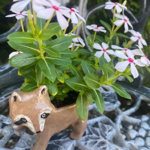 ✨アライグマの植木鉢に ニチニチソウ 夏花火✨ アライグマの鉢は主人の作品です❣️ 可愛いでしょう😍 ニチニチソウは挿し芽です❣️ 親株はダメになってしまったので挿し芽が育ってよかったです💕 残暑が厳しくて参りますね。 今日も体調に気をつけてお過ごしくださいね🍀