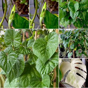 おはようございます😊 斑入りモンステラ親株 根元とてっぺん アンスリウム・バーケリーの花?実? これから赤くなるはず🧐 夕顔の葉 順調かな🌿 黒真珠の蕾 久しぶりです♥️ 黒真珠の蕾で 🏷️金曜日の蕾たち参加させてください🙏