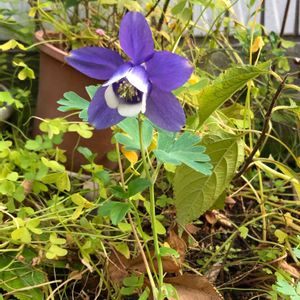 早めに振りだした雨に濡れたお花たち。 オダマキと、テッセン(私より年上)。