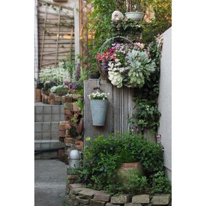 ◆いつもの箱庭 箱庭入口の枕木周りの様子です... 放任にしている下に置いてある秋に作った寄せ植え(?)は、殆ど花は終わってしまいました。 でも元々春に咲く花が入れてあるので、これから花が増えてくるはずなんですが、塀の陰になってしまうので、ネメシアやジプソフィラの花は遅れがちです。