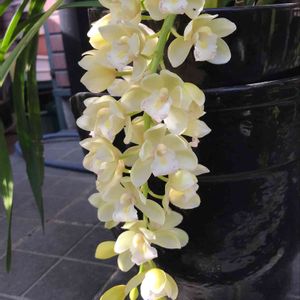 シンビジウム・アイスキャスケード系です。 自然大好き派😘を名乗っているのでこれはアップしづらいのですが、番外編と言うことでお許し下さい。我が家でも次々に開花し花達がアップして⤴️とうるさいです♪😊🤗
