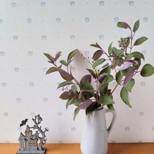 外は涼しいのに、まだ日中は家の中が暑いです😑 10月はHALLOWEEN🎃の月ですね♪ セリアで可愛いWOODSTANDを見つけ、 即買いしました🦇👻🎃 去年からあるそうですが、100円でこんな素敵なデザインのものが買えるなんて、すごいです‼️ 一緒に、うちの西洋ニンジンボクをカットして飾ってみました〜🎶 紫💜が入ってていいかも✨✨✨