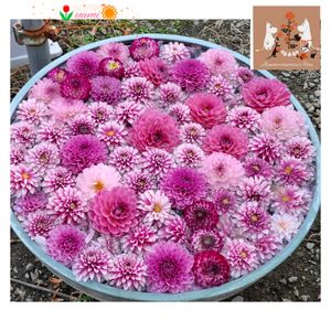 💜💀👻🎃HALLOWEEN🎃👻💀💜 今年の寄せ植えはこんなです♪ プチダリアは、夏の間うどん粉病っぽくなってしまい・・薬でもなかなか治らず😑 一度ばっさりカットしたら、復活してすごく背が高くなりました❣️ 作った時は咲いていませんでしたが、やっと咲き始めました😆🩷 今日はお天気が良くなくて、これから☔になるようです💦 すごく降る予報なので、被害が出ませんように🙏