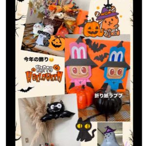 🎃HAPPY HALLOWEEN🎃 植物はなに? 後ろにパンパスグラスを飾ってみました😊 人気のラブブは、折り紙で☺️ もう明日から11月だなんて、月日が経つのは早いです。