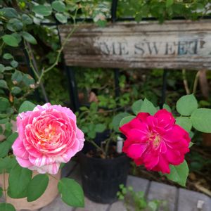 今朝の庭のバラ🌹🌱 二輪並んで咲きました☺️🙌 酷暑だと言うのに健気です😂💦