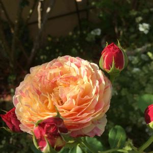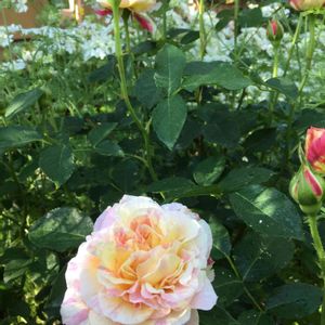 Claude Monet クロード モネ 作出 2012年 フランス Delbard 系統 S シュラブ 交配 未発表 花色 黄とピンク絞り 花形 ロゼット咲き 花径 中輪 芳香 中香 香質 ティーとパウダー 開花 四季咲き 樹高 1.1m デルバールのバラと言えば花は可愛いけど巨大化するというイメージが強かった💦 大好きなナエマ姫はその最たるもので地植えにしたらのびのびと、それはもうのびのびと育っています(´・ω・`;) だ·け·ど♪ このクロード・モネは完璧に木立タイプ💕 コンパクトにまとまるけど樹勢は強くてちょっと葉を落としてもしっかり復活してくれる育てやすさ(*´ω`*)香りも大好きなティーがベース。 ティー系の香りってダマスク系程の強香にはなりにくいみたいですが、派手さはなくても爽やかで飽きのこない香りです💕✨✨ もーかーわーいーいー❣️❣️