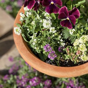 今日も暖かくとってもいいお天気ですね〜😊☀️ 今日のお花のアリッサム🌸✨ パンジーと寄せ植えした、 ジュエリーアリッサム💖✨ 三色ミックスですが、可愛いピンクはまだ元気ないけど、 ももりもり育ってほしいなぁ〜🌸 下の紫色のもりもりアリッサムは、 春からの元気な子達です😃 紫色は強いのかな〜💜✨