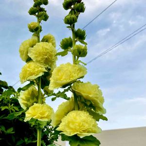 タチアオイ 八重 (ホリホック) アオイ科 真っ直ぐに伸びる草姿からタチアオイ(立葵)と呼ばれています。😊 昔から親しまれて来ました。梅雨時はあちこちに見られますね。🥰 私の育った環境は各家に必ず植えられていました。🌱🌱🌱🌸 今では品種改良されて色々な花の形が出て来ましたね。 picは八重咲きです。