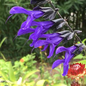 💜 サルビア・ガラニチカ シソ科 アキギリ属 夏から秋にかけて房のような紫の花を付ける。地下茎で伸び子株で増えていく このお花の名前がいくつかあり、色々と検討してこの名前にしましたが、間違ってたら教えてください 何度このお花を見ても🐍が口を開けてるようにしか見えません