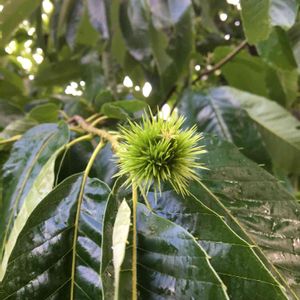 庭の栗!今年も沢山なって下さい。まだ500円玉くらいです。まっくろくろすけみたいで、これはこれで楽しい。