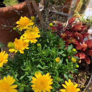 久しぶりの投稿 オステオスペルマム3dシルバー、ツリージャーマンダーアイスキューブ、ビーダンスの寄せ植え。 植えてたての頃はビーダンスが2、3輪咲いているだけでしたが暖かくなり一気に増えてきました♪