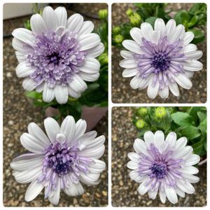 八重咲きダブル オステオスペルマム 3D 『シルバー』 初お迎えです 中心の八重部分が濃くなってて可愛くないですか🤭💕 お気に入りの鉢に入れて 大きくなったら植え替えかな〜🪴