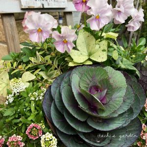 おはようございます☀ 何度か投稿させて頂いている、植えて1ヶ月半程経った寄せ植えを別角度から✴️ 葉牡丹の存在感が凄いです😆🤣 今日も素敵な一日となりますように🌸