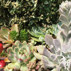 昨日の多肉植物の寄せ鍋大鉢を別の角度から。 名前知れずの真ん中のぷりぷりちゃんの白いお肌に黒いモノがチラホラ^_^; 正午前後に直射日光がガンガン当たるせいなのか風通しが悪いせいなのか原因はわかりません(´× ×`) 西日は薔薇の鉢植えで当たらないようにはしていますが、我が家は基本(結果?)スパルタです。 無計画に放り込んだ為、大きいコの陰になってしまったコも居るので秋になって余裕が出来たら植え替えの予定です( ̄▽ ̄;) はぅ、、、頑張ろ٩(>ω<*)و