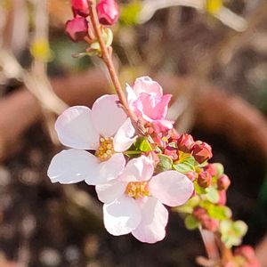 🌸ピンクユキヤナギ🌸 赤いつぼみが可愛らしく 咲いたら薄くなるけど 白よりはピンク寄り🎀💕💓💗 一昨年、公園で無料配布していた苗が大きくなって来ました😄