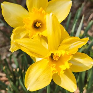 💛💛ラッパスイセン💛💛 黄色×黄色で大きめのスイセン🟡 咲くと華やかですね💕︎ つぼみは上向いて出てくるのに 咲く時には横向くなんて 写真向きだわ📷 ビタミンチャージ出来そうな眩しい黄色です😚