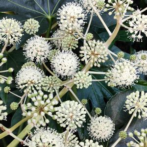 綺麗な模様出てますね! ヤツデの花が まるでカーテンの柄みたいで綺麗✨ これから実になっていくのかな😃
