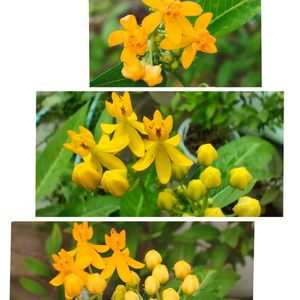 💛💛💛アスクレピアス ツベロサ種💛💛💛 普通のトウワタは朱色と黄色のツートンカラー だけどこれは黄色のみ。 寒さにも強いと言われるツベロサ種です💪 綿毛が飛んでそこにも生えるので よく増えるようになってきました😃 フウセントウワタの芽🌿とよく似ていて 花が咲くまで分からなかった去年! 今年は葉の太さが違うと認識したので もう間違えませんよ☺️