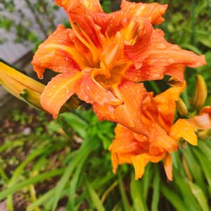 🧡ヤブカンゾウ🧡 数年前から庭の奥に突如現れたオレンジ色のもしゃもしゃの花🧡 毎年咲くのが当たり前になりました😊 なんとも複雑なシワシワ花弁。 根が漢方にも使われるのかな? オニユリよりも先に咲いてくれる我が家の住人になりました✨
