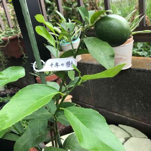 娘たち夫婦の結婚の記念樹、「10年の木」にも初めてレモンがつきました。 (10年お付き合いして結婚したので) 植樹して一年です。