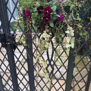 秋色エントランス よく咲くスミレ 多肉植物(朧月 火祭り 乙女心 グリーンネックレス) ワイヤープランツ へデラなど
