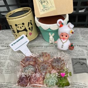 おはようございます🍀 今朝は比較的暖かです💕 🏷️パンダの日 🏷️ハニワの日 🏷️つぶつぶの日 🏷️るる かまぼこ板で繋がる輪 1枚目は、45さんから頂いた「花火」少しずつ緑になってきましたが、まだまだ赤くて可愛いです💕 今月も、サグウとサニワ君の登場です。 2枚目は、昨日もお知らせしたように、多肉植物ちまちま屋さんでは、ゴールデンウィーク中、『全品半額セール』開催中です。 詳細は、昨日の投稿を、ご覧になって下さい。 値札のあるものは、半額ですが、棚等にある、値札のない寄せ植え等は、「はなずきん」さんが大切にされている『非売品』ですので、お持ち帰りにならないようご注意下さい‼️ ご覧になることは、大歓迎です🥰✌️ あんなにたくさんあったウッドデッキの上も、GS有志8名とご主人、息子さんの協力で、右上↗️のように、スッキリした写真になりました。 GSを始めてすぐにお店を始めたばかりの「はなずきん」さんと、知りあって、いろんな事をお願いしたり、教えて頂いたりしたことが思い出されます。 アメシストセージさんの寄せ植えの委託販売が始まると、価格を考えたりもしました。 訪れる度に、投稿したり、行きつけの珈琲店の店主や友人、知人にも紹介し、ライン登録していただいたり。 はなずきんさんからは、「広報担当」と呼んで頂いたりしていました。 まだまだ、志半ばなので、いつか復活を願って、これからも多肉のお世話をしていきたいと思います。 ご協力を頂いた皆様には、本当に感謝します🌿 分からないことがあれば、いつでもお問い合わせ下さいね😃✌️