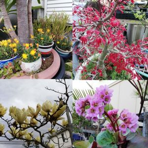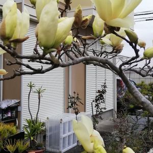 左から 4時の3時草 閉じ始めていました → もみじの 出猩々 さすが色鮮やか 満開の 黄花モクレン エリザベス → 茎が伸びてきた ヒマラヤユキノシタ